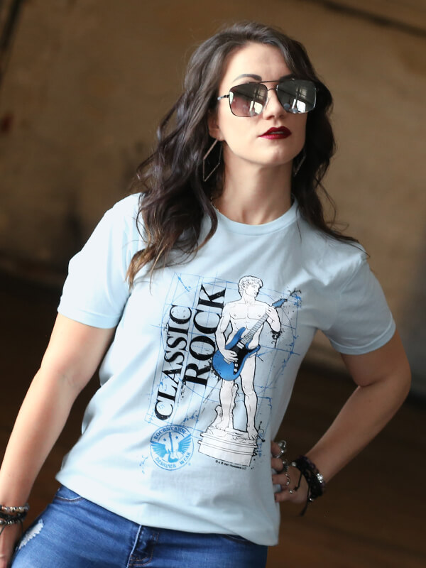 $35.00This fashionable graphic T-shirt features a modern rock-n-roll twist on the classic Renaissance masterpiece “DAVID” by Michelangelo.